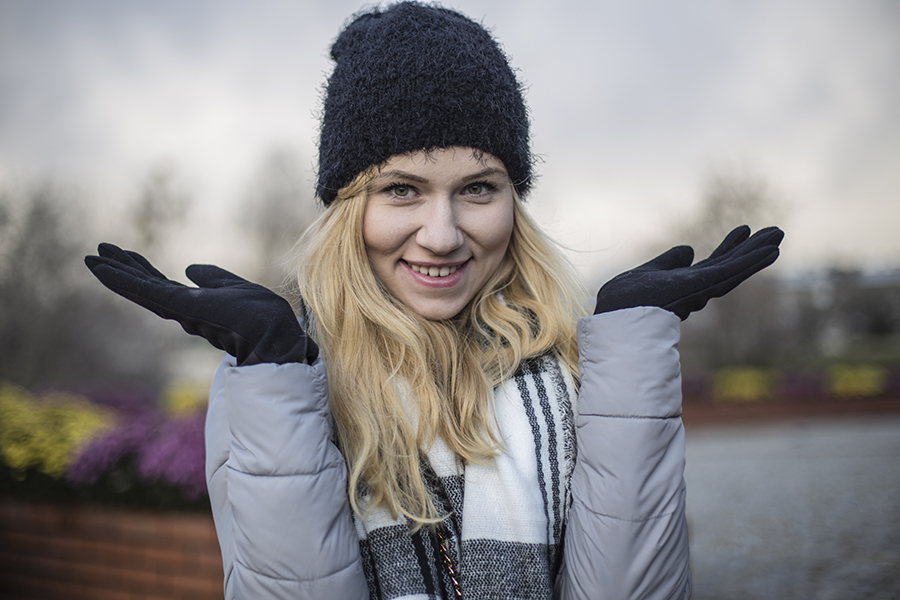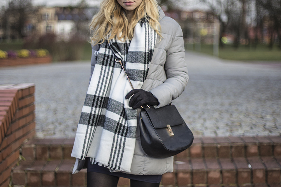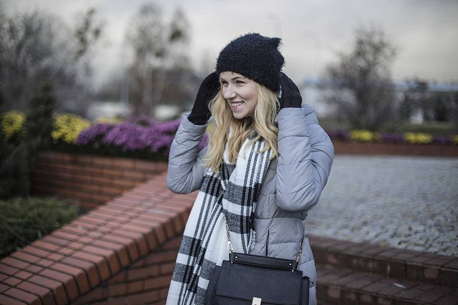 Za oknem temperatura spadła poniżej zera, czas na pierwszą ciepłą stylizację w czapce i szaliku. Jeszcze kilka lat temu, w liceum, przez głowę by mi nie przeszło, że z chęcią będę zakładać czapkę. Zawsze latałam z gołą głową, bez rękawiczek i w cienkim płaszczyku. Z wiekiem człowiek chyba idzie po rozum do głowy, bo zaczęłam uwielbiać zimowe dodatki, których mam całkiem niezłą kolekcję i ciągle mi mało. W tym roku też nie obyło się bez nowości w tej kategorii. Niedawno uzupełniłam swoja zimową garderobę w ciepły biało-czarny szalik i rękawiczki z puszkiem. Myślę, że ciężko będzie mi się powstrzymać i nie kupić w tym roku już żadnego zimowego dodatku, tym bardziej, że potrafią one dodać smaczku każdej nawet najzwyklejszej stylizacji.